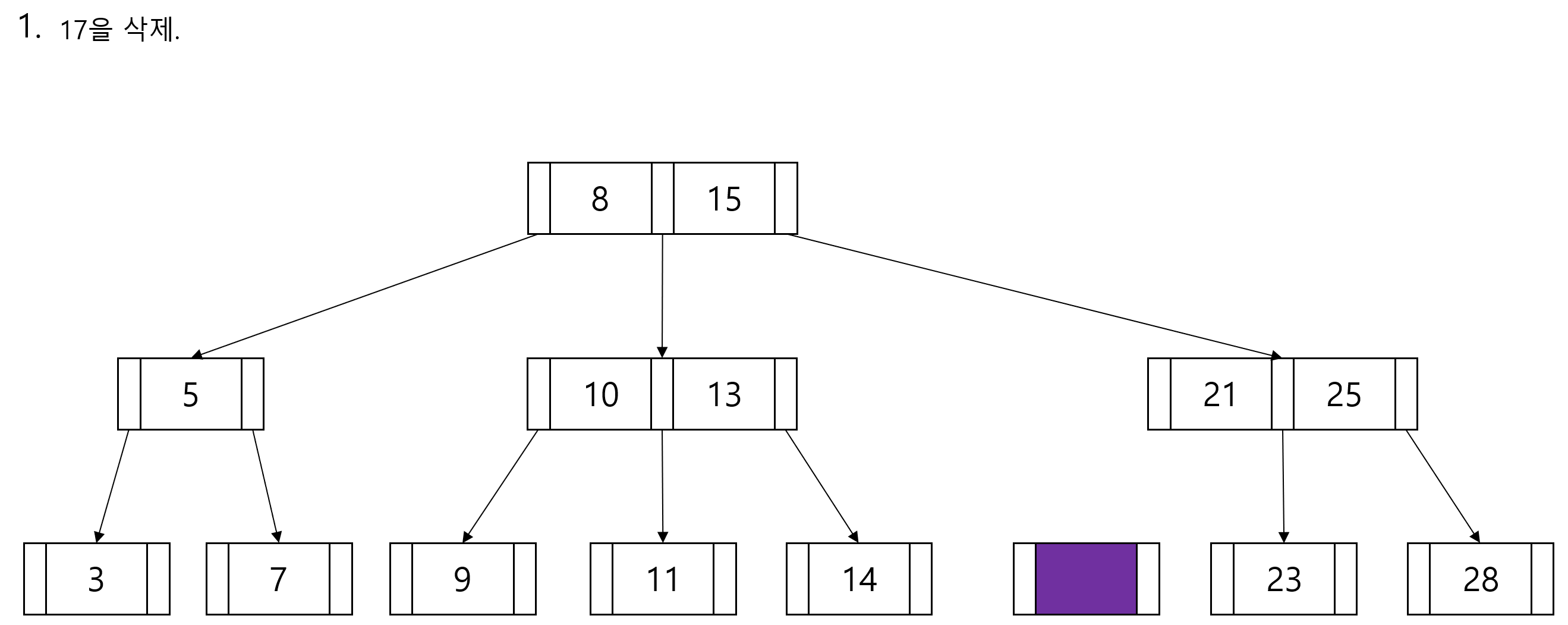 형과 나 사이의 key를 부모 노드로부터 받고 그 key와 형의 key를 차례로 나에게 합친 뒤 형의 노드를 삭제합니다.