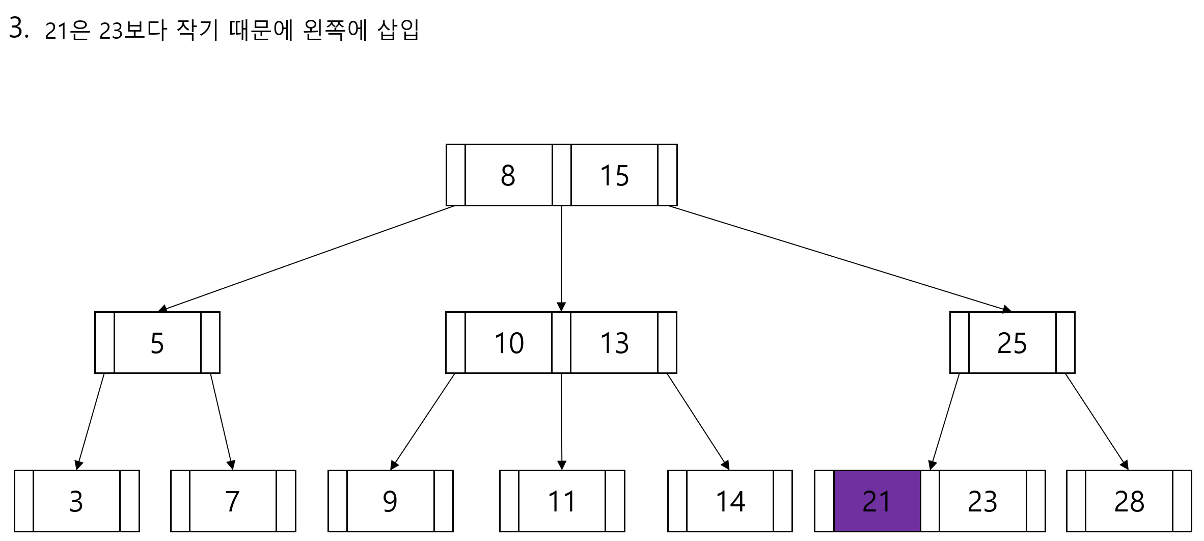 - 노드 안 데이터는 오름차순으로 정렬됩니다.