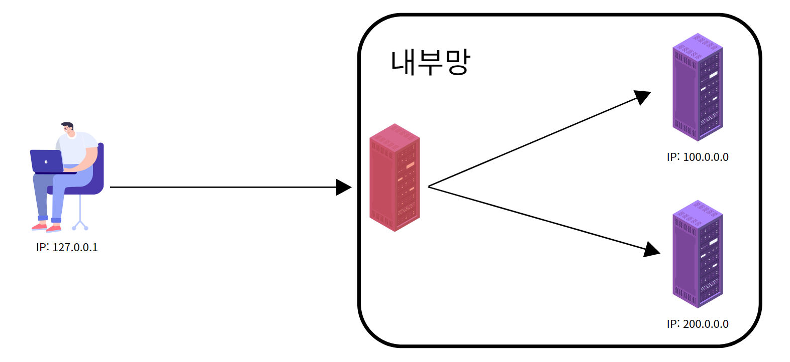 따라서, 외부 Server에는 Proxy Server(위 그림에서는 100.0.0.0)에 대한 액세스 로그만 남게 됩니다.